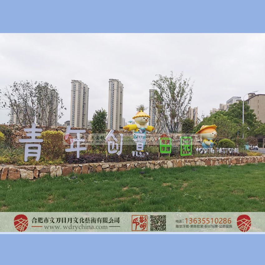青年创意田园入口标识标牌 不锈钢发光字