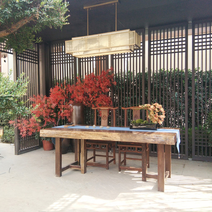 御景江山户外软装软饰-大板桌茶桌官帽椅组合