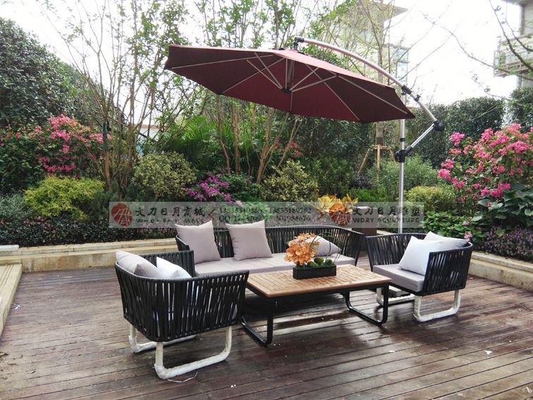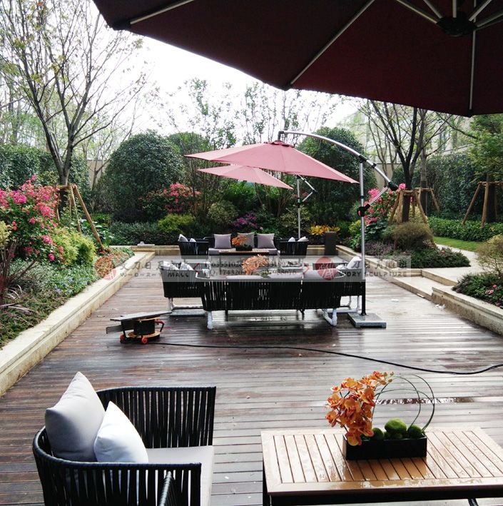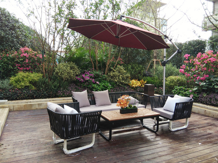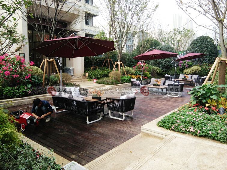 御景江山软装软饰-沙发茶几阳伞组合户外实景图