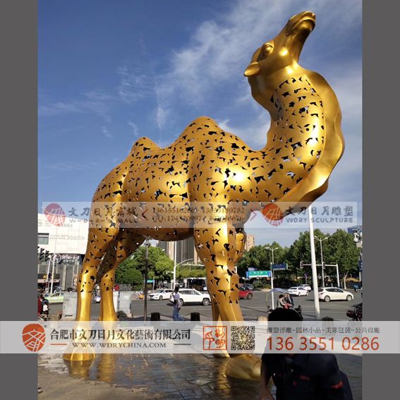 国内商业动物主题金骆驼不锈钢雕塑