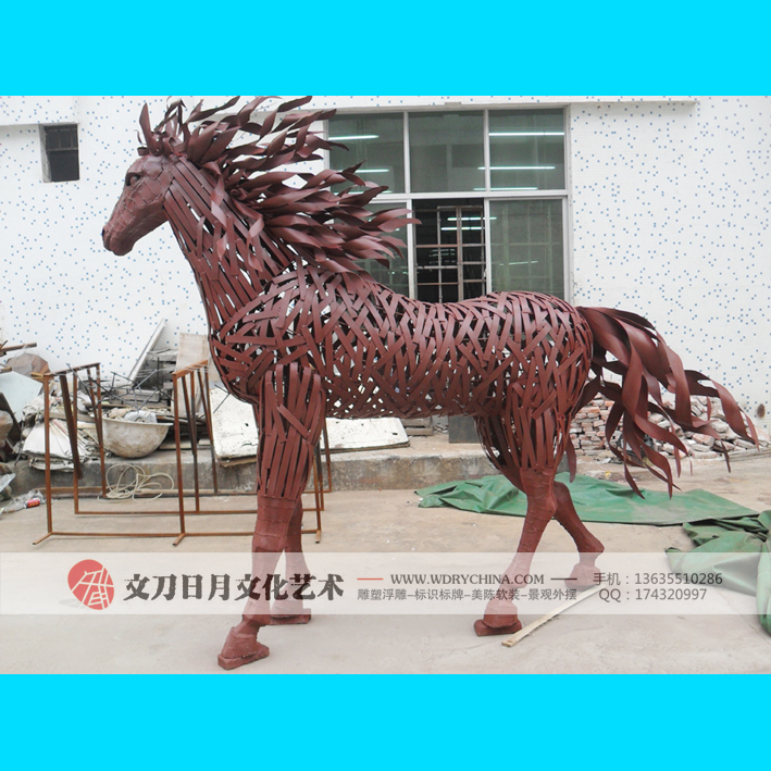 不锈钢动物马雕塑 新工艺落地摆件 金...