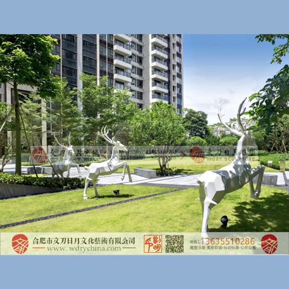 景观几何抽象鹿群 不锈钢雕塑 城邦项...