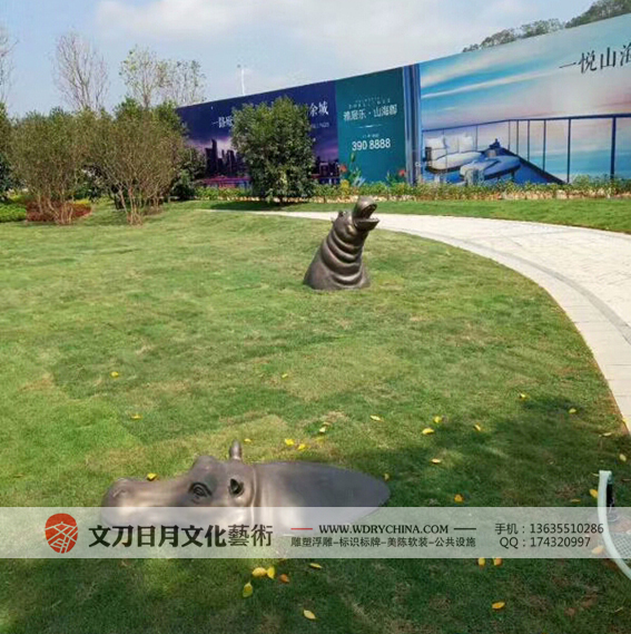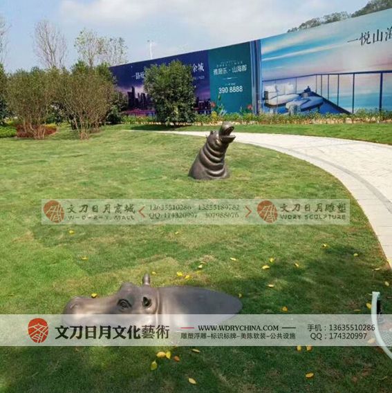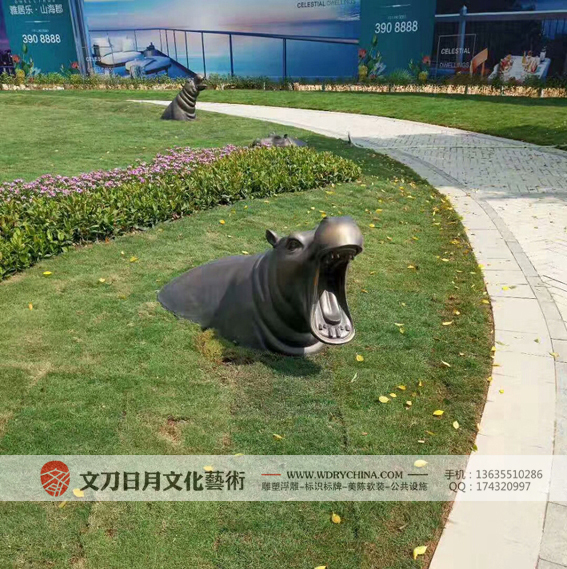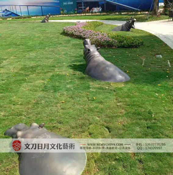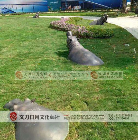 示范区绿化河马群雕塑小品 铸铜锻铜不锈钢雕塑