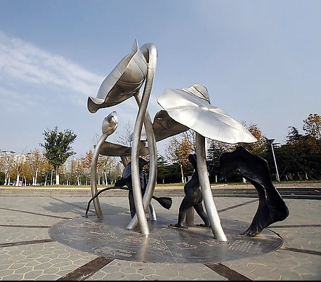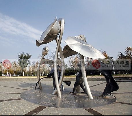 荷叶荷花主题生态广场雕塑 不锈钢雕塑