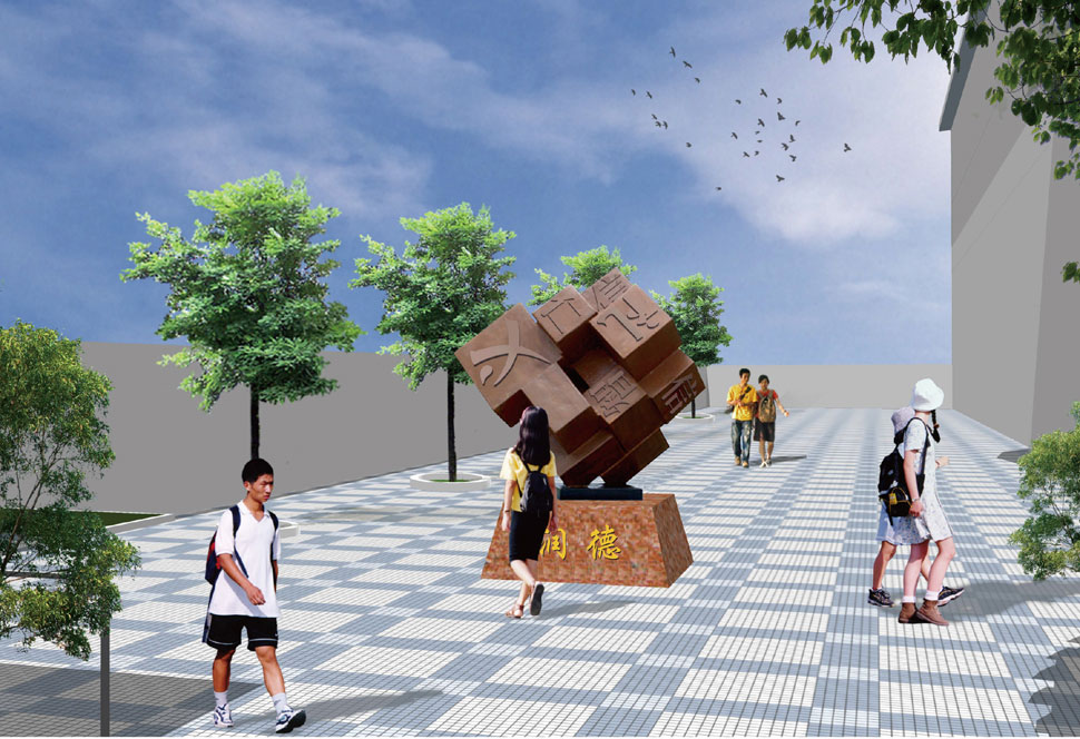校园雕塑与所有的校园物质景观一样,积淀着历史、传统、文化和社会的价值,蕴含有巨大的潜在教育意义。校园雕塑通过被解读,不仅使学生掌握一定群体的环境知觉,同时从雕塑作品中领会特定文化的设计思想、态度、情感和价值观受到潜移默化的影响。校园雕塑大都运用抽象与象征、隐喻和悖论的手法表现,特别是我国的校园雕塑,一般具有纪念性、象征性、激励性、装饰性等特点,突出思想审美、重视德育潜化,或着重表现人类的智慧和对真善美永恒的追求。