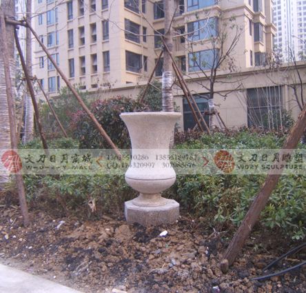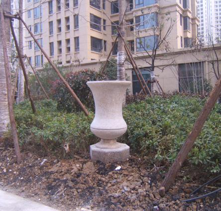 国贸天琴湾 酒杯状锈石花钵 石材花钵