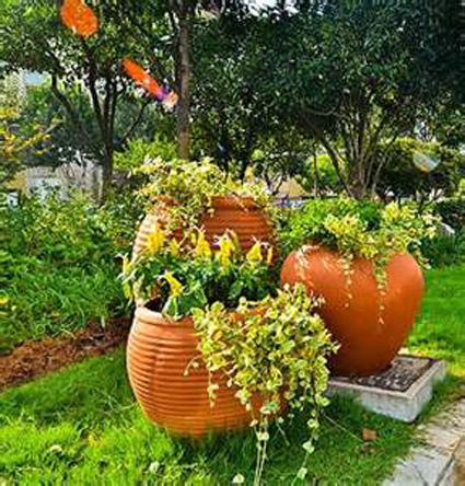 园林陶罐是用于园林景观和花园别墅中配套使用的盆状器物, 其中以陶罐类的最有艺术效果。主要应用在园林绿化、景观绿化、私家园林、小区绿化、家居摆设中盛土和植栽苗木的陶罐,一般称为园林陶罐。其规格较大,工艺难度越高,纯手工成型,最有自然韵味和艺术效果。