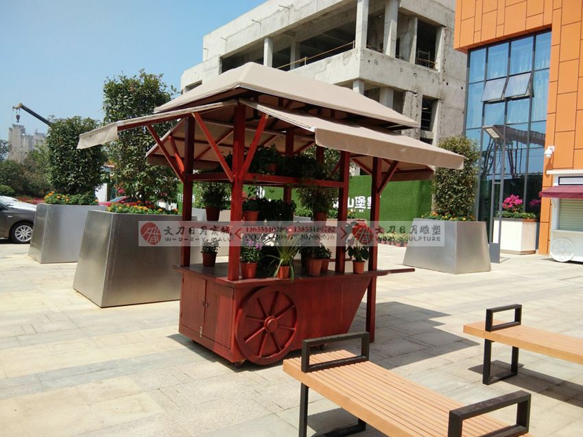 花山堡墅防腐木大型花车 实木摆放景观...