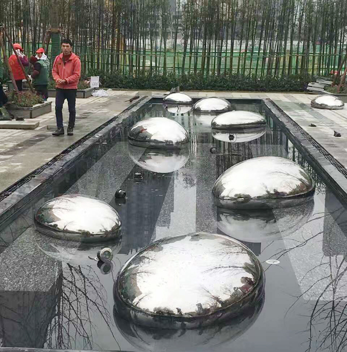 保利熙悦府售楼部水景雕塑小品 不锈钢水滴雕塑