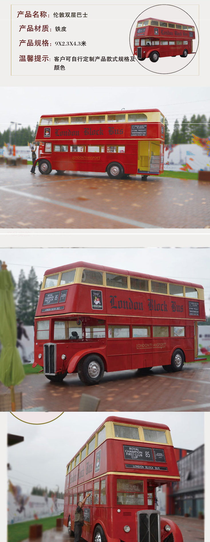 大型伦敦双层巴士模型 铁皮摆件 来图定制英伦巴士模型城市景观