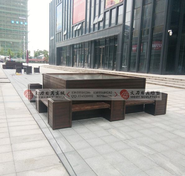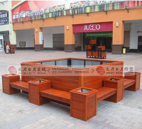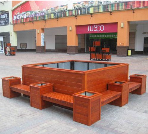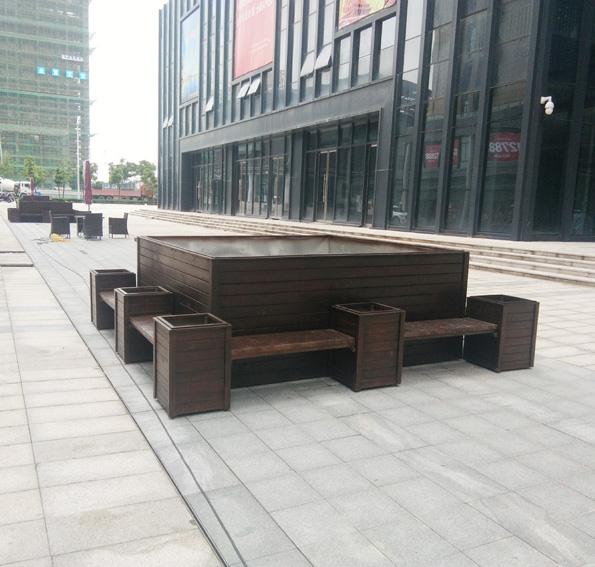 城邦花园商业街防腐木花箱座椅组合 花箱树池座椅