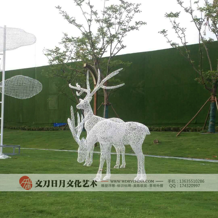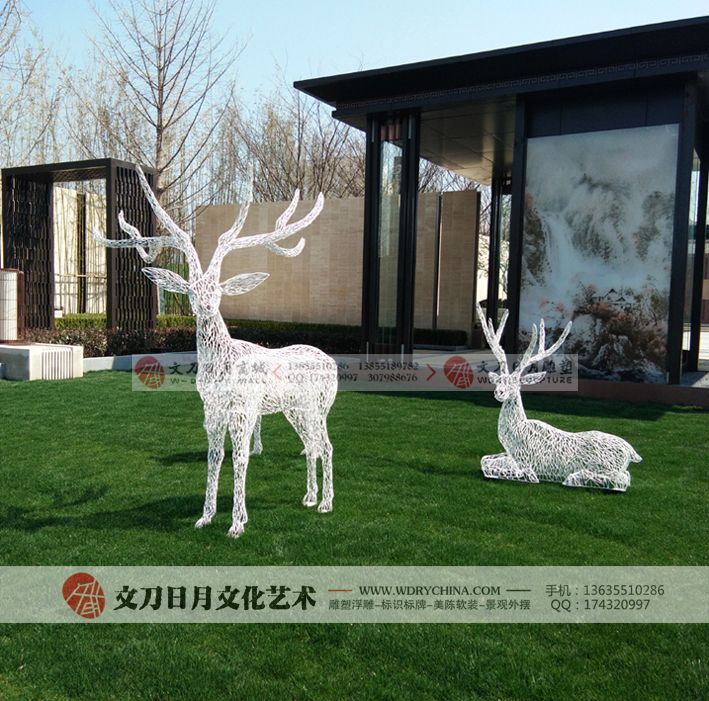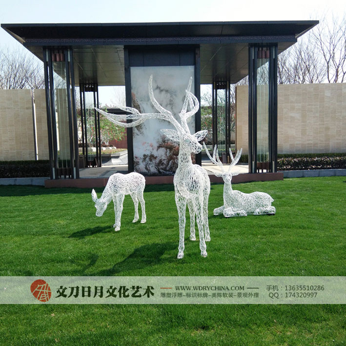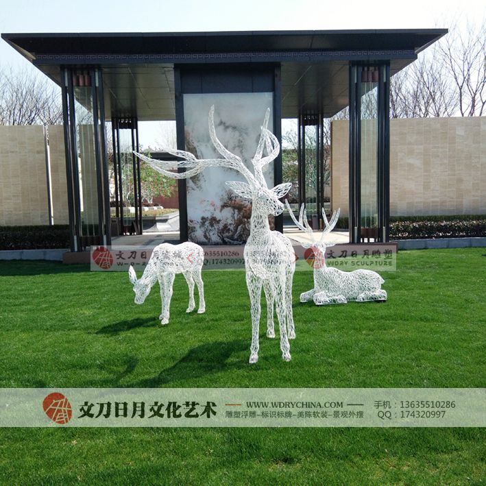 旭辉【江山庐州印】示范区抽象不锈钢鹿雕塑 新中式雕塑艺术