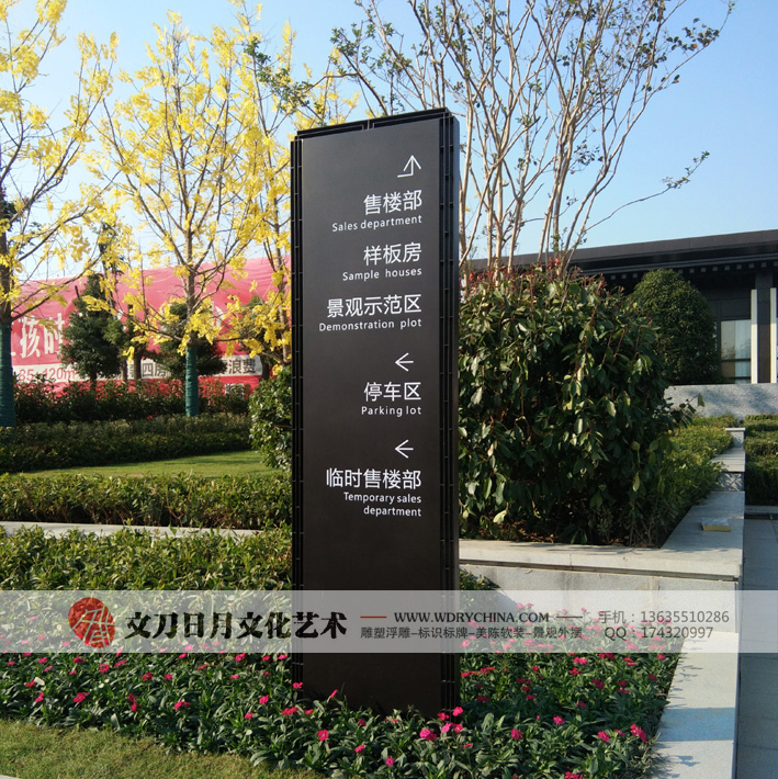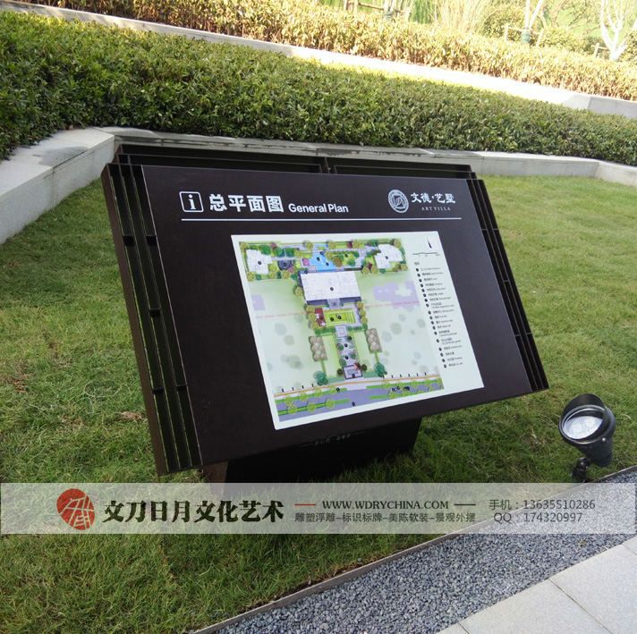 文德艺墅展示区景观标识标牌 不锈钢平面图指示标牌制作