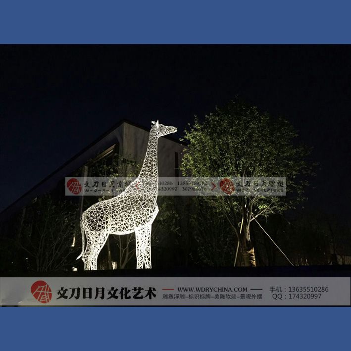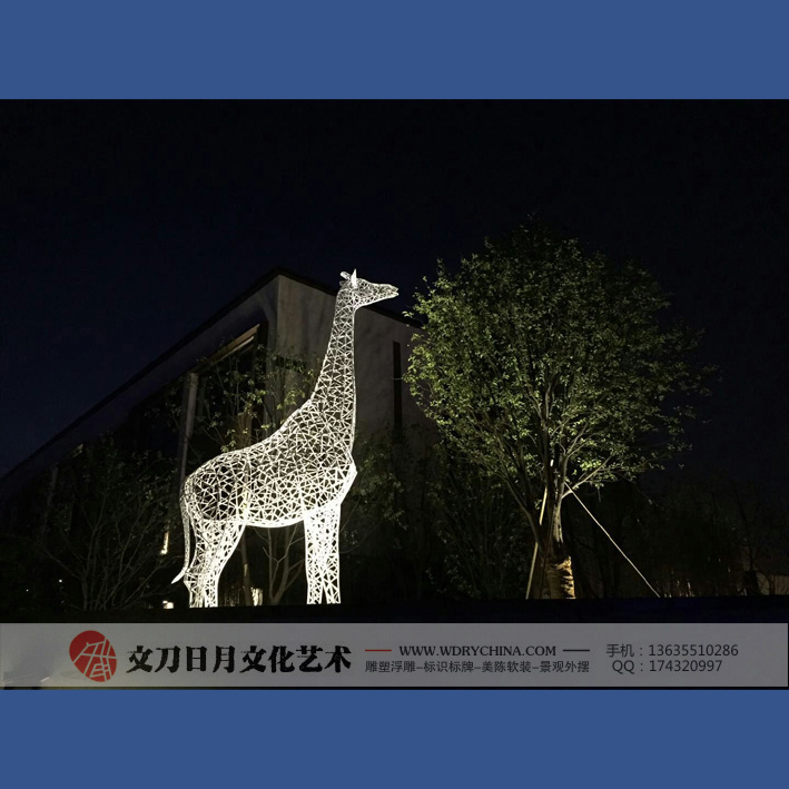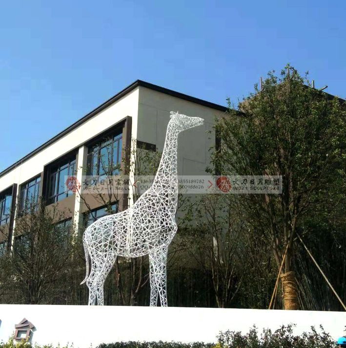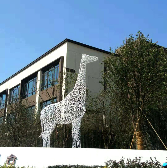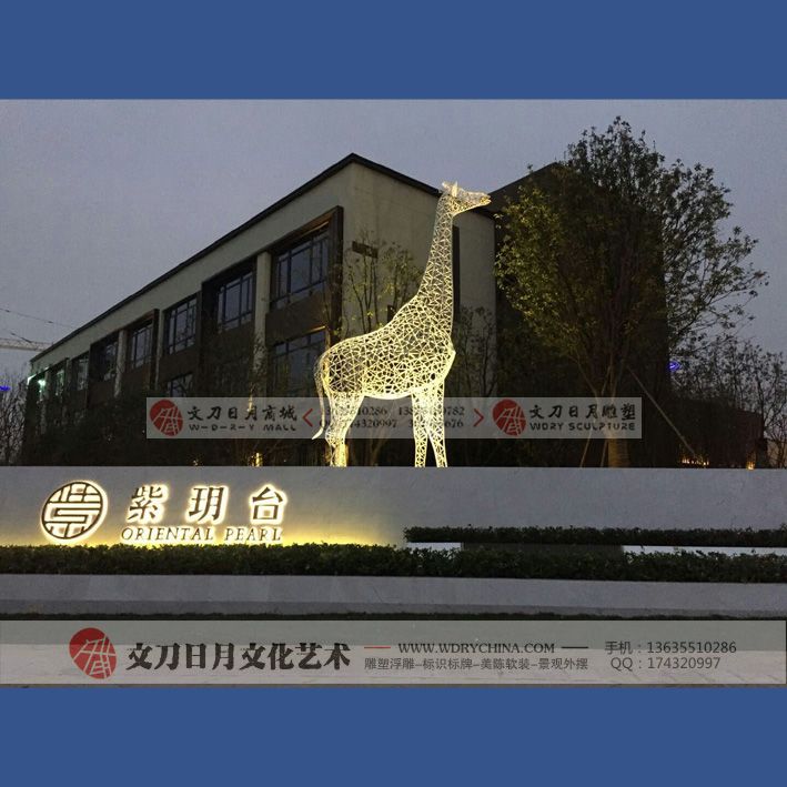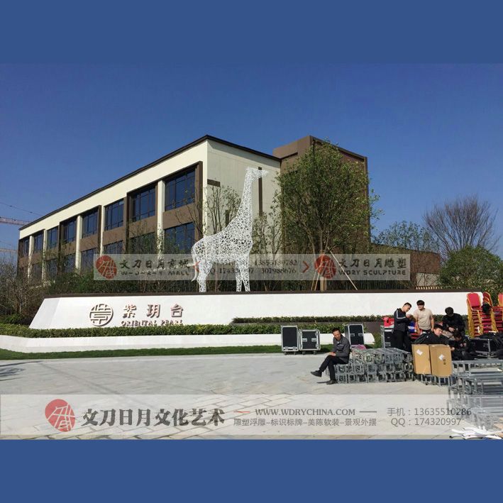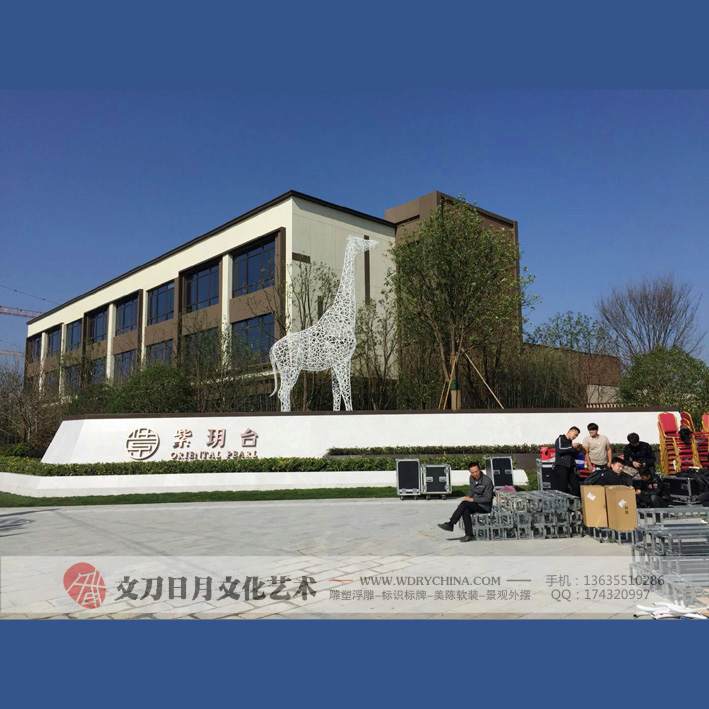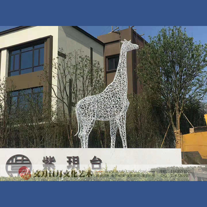 华润紫玥台长颈鹿雕塑 不锈钢烤漆雕塑 景观动物雕塑