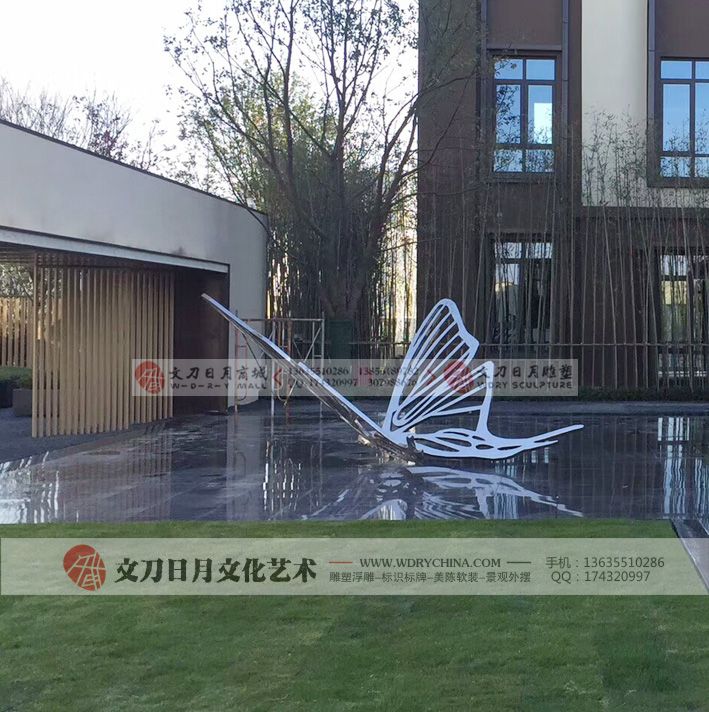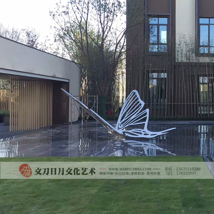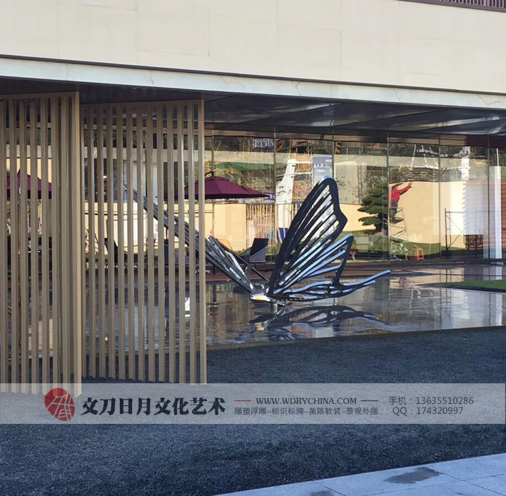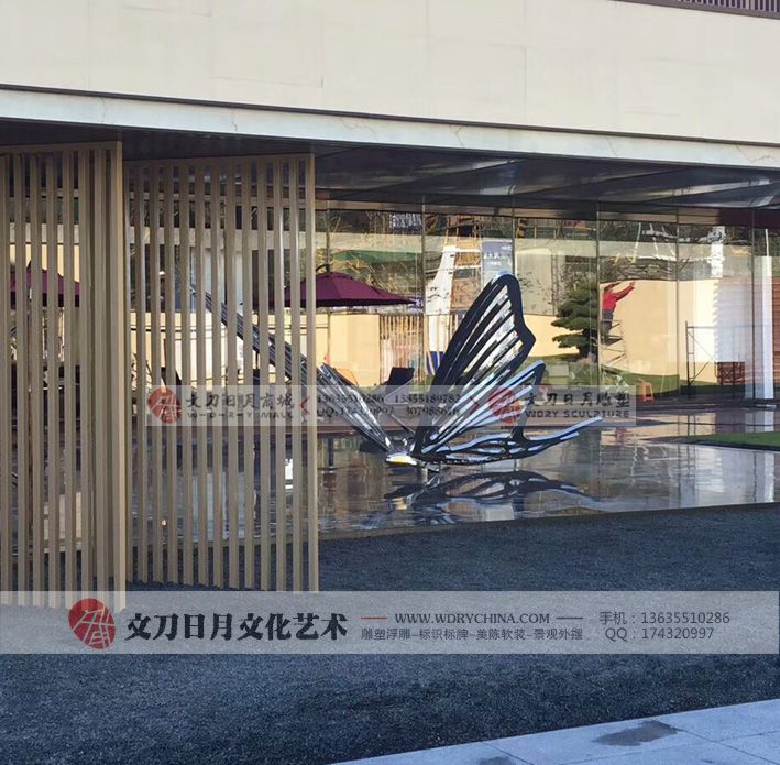 华润紫玥台不锈钢镜面蝴蝶雕塑 不锈钢烤漆雕塑 景观动物雕塑