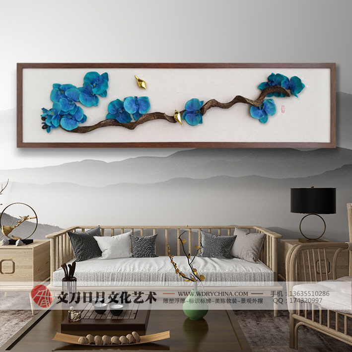 新中式客厅沙发背景装饰画餐厅卧室禅意实物立体装饰画样板房挂画