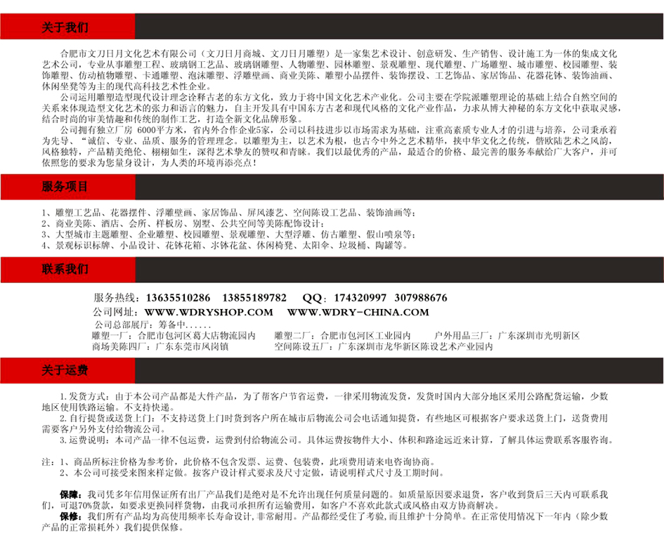 艺术是一个民族文化的产物,不同民族会有不同的文化,有自己的文化“内涵”,这是与其它民族文化相区别的根本所在,也是不同民族文化立足之本。不同文化背景下会有不同的艺术。各民族艺术可以互相影响,互相吸收,但决不能照搬,失去自我而盲目跟着别人跑是永远形不成自身面貌的。我们民族艺术有非常独特的表现和突出的特征,值得我们去发扬光大。景观雕塑最具大众性,它需要充分与观众交流和对话。