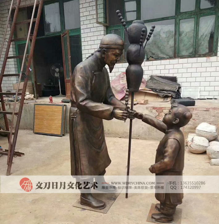现代人物商业街民俗小品卖糖葫芦情景园...