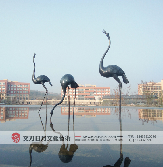 中铁园林景观小品 鹤寿延年 铸铜锻铜玻璃钢雕塑