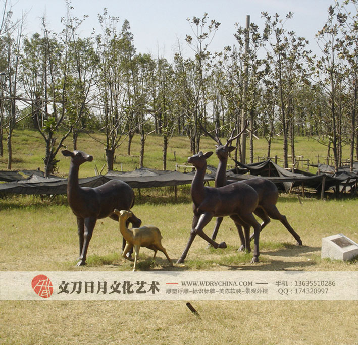 玻璃钢不锈钢动物鹿群雕塑 花钵砂岩浮雕 安徽合肥雕塑公司