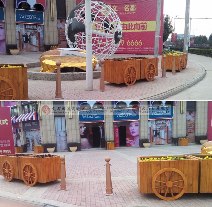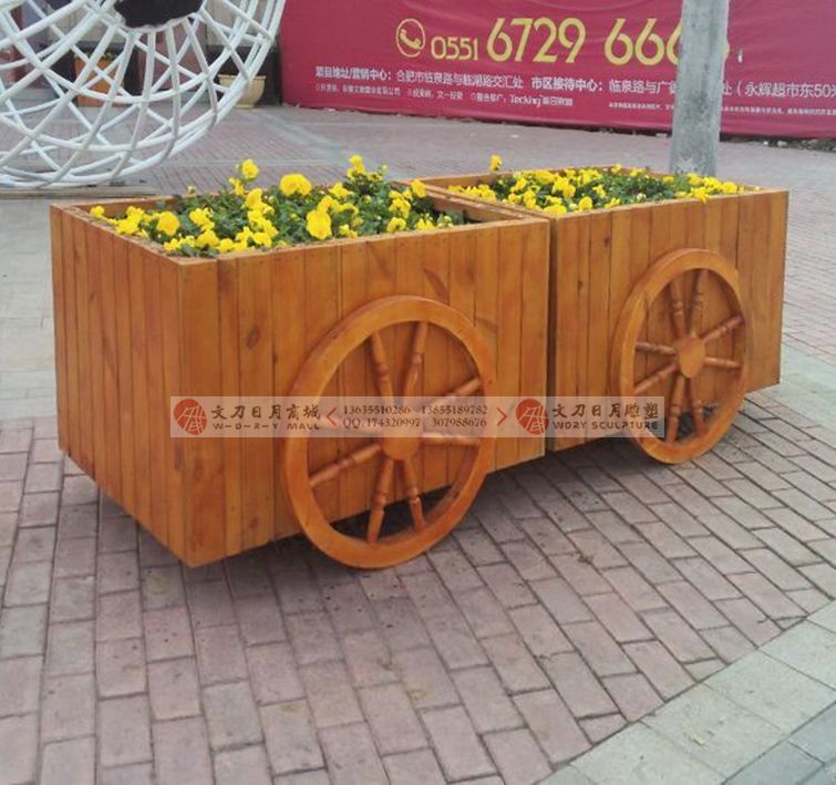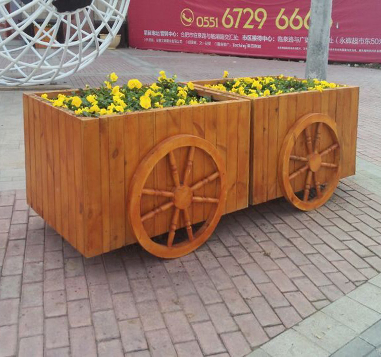 文德商业街防腐木花车 合肥防腐木花车花箱