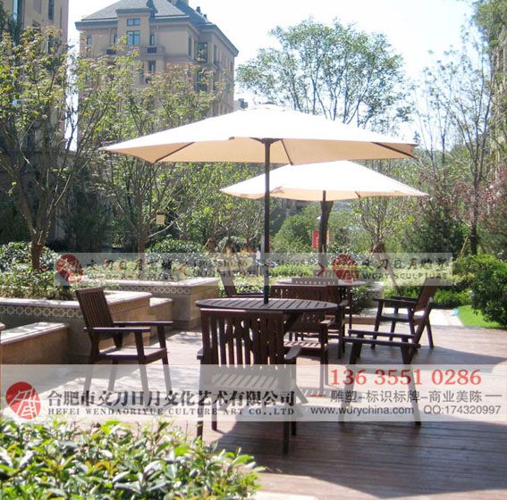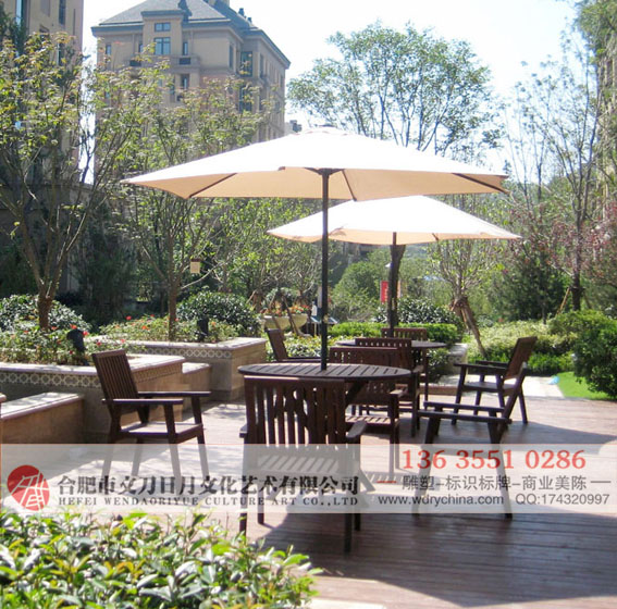 芜湖柏庄地产实木桌椅组合 户外家具 合肥雕塑公司