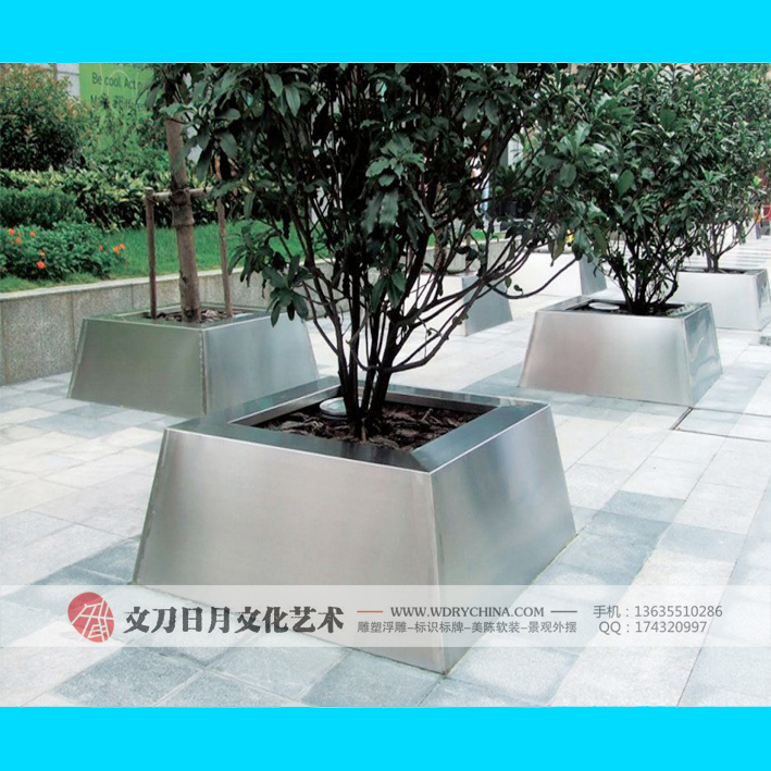定制户外大型不锈钢种树池金属大花盆挡路花箱景观花器
