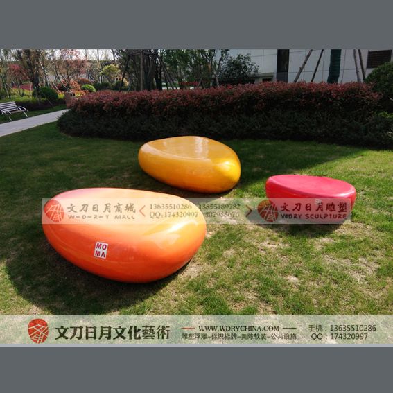 玻璃钢坐凳鹅卵石异形休闲椅商场创意公共区美陈休息等候座椅