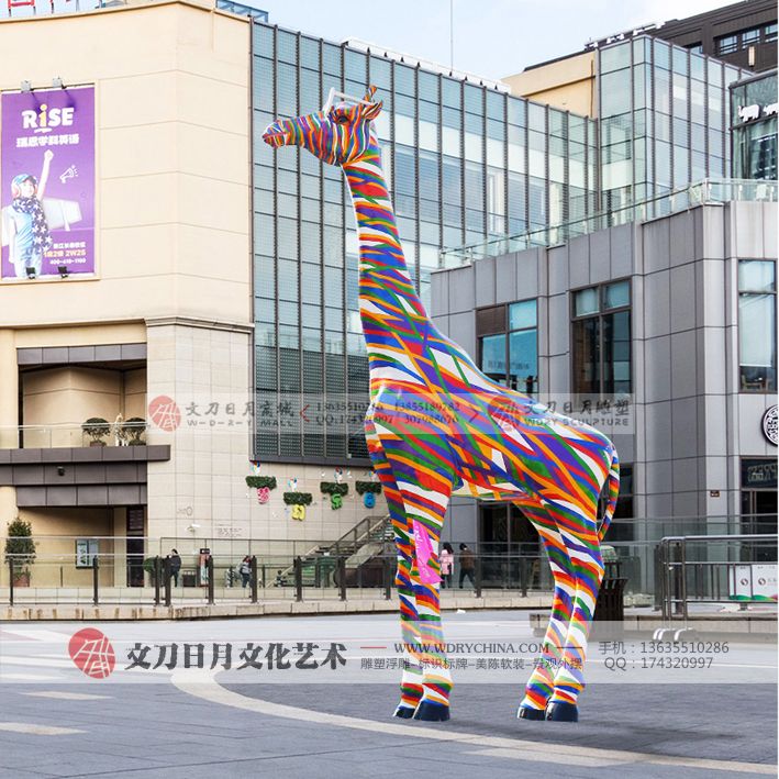 玻璃钢雕塑创意动物摆件户外花园装饰园林小品景观美陈长颈鹿摆件长颈鹿商场中心点缀装饰