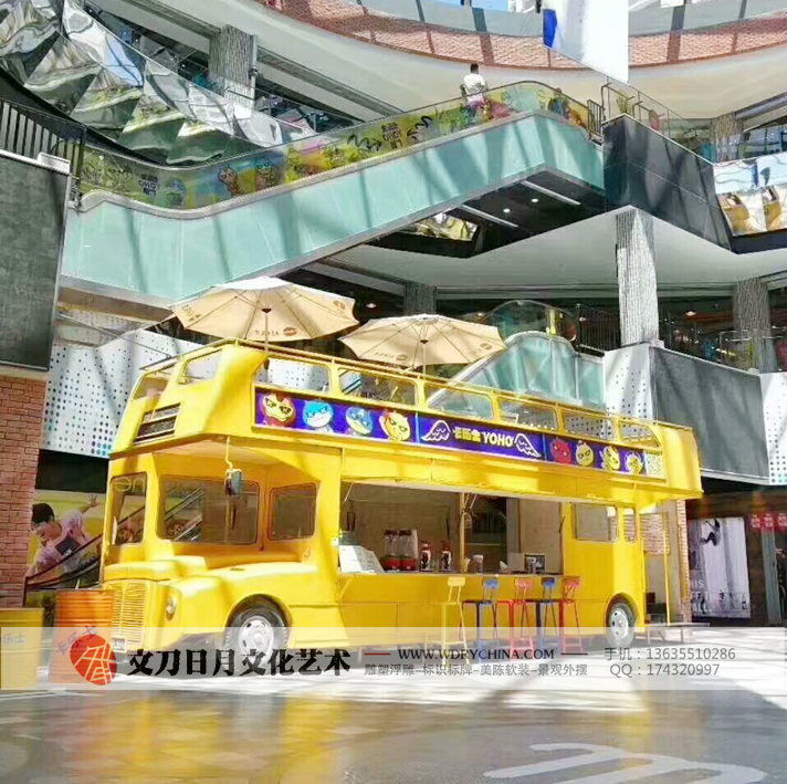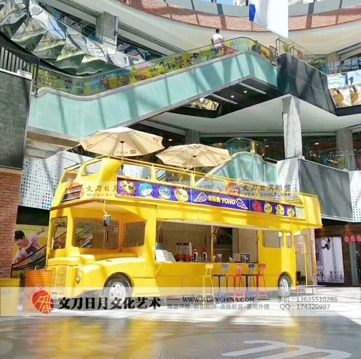 定制酒吧奶茶咖啡售卖车定制商场展示铁艺模型车场景美陈