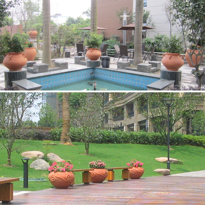 园林陶罐是用于园林景观和花园别墅中配套使用的盆状器物, 其中以陶罐类的最有艺术效果。主要应用在园林绿化、景观绿化、私家园林、小区绿化、家居摆设中盛土和植栽苗木的陶罐,一般称为园林陶罐。其规格较大,工艺难度越高,纯手工成型,最有自然韵味和艺术效果。