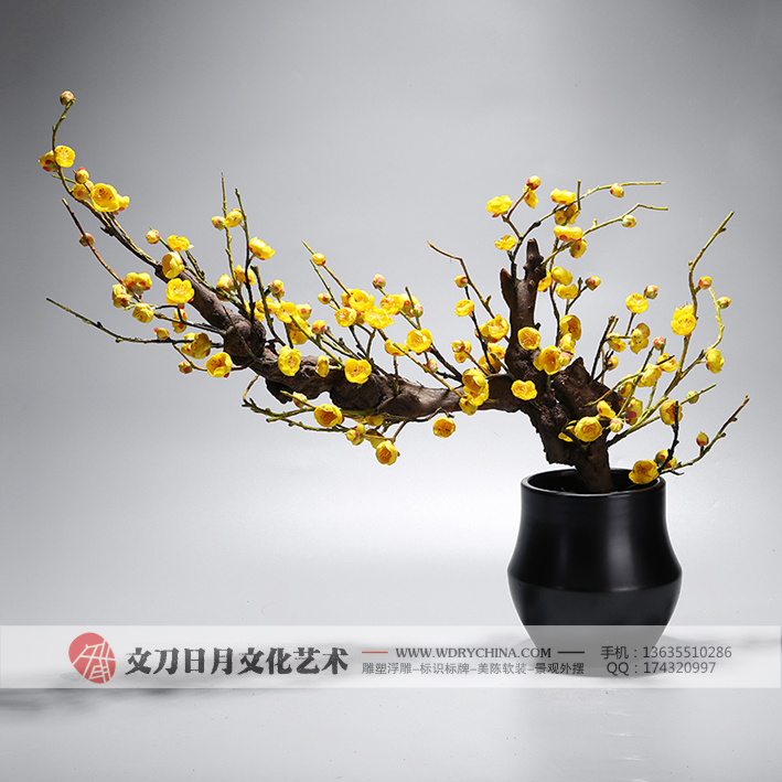 新中式黄色仿真假花腊梅花高枝寒梅落地大枝花苞室内装饰花绢花