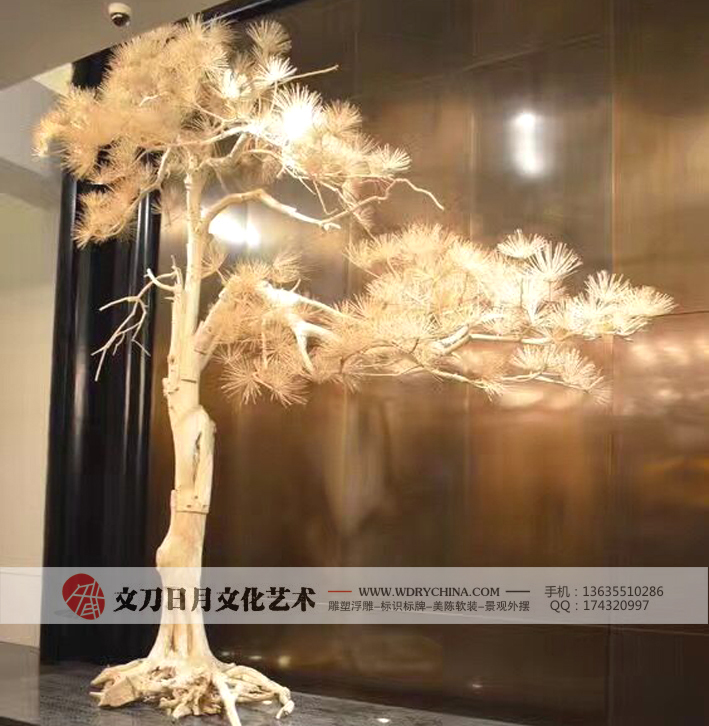 枯山水迎客松大型酒店大堂会所落地装饰...