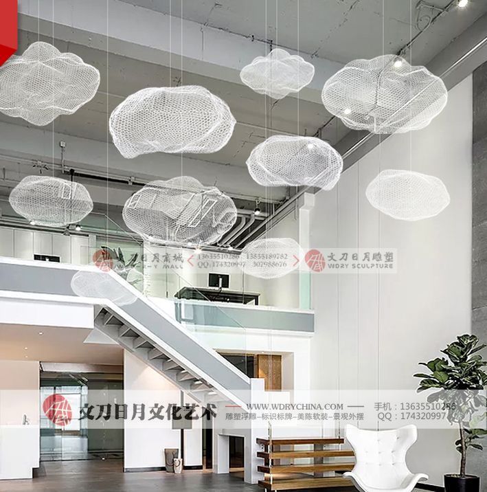 抽象金属铁艺白色酒店售楼处会所大堂吊...
